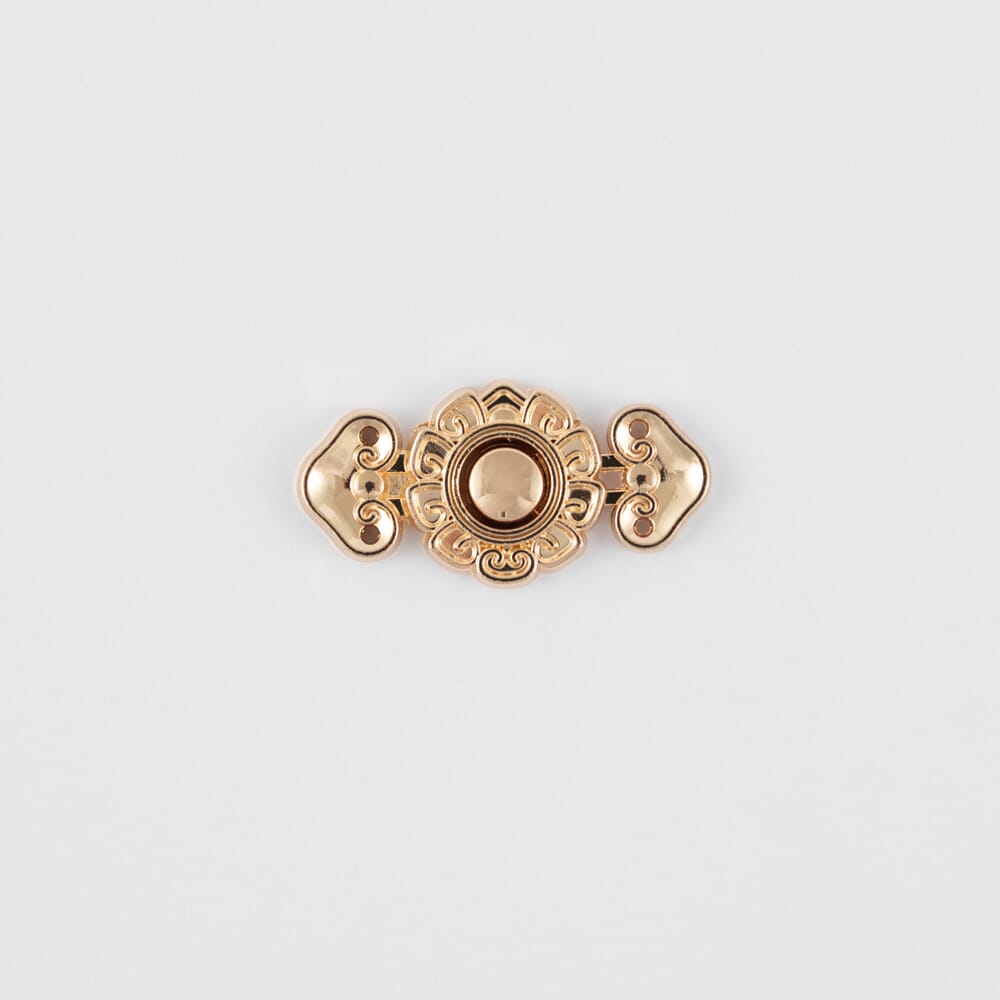 Hekte av metallegering. kan vaskes på 40 grader. Gullfarget. Nikkelfri.