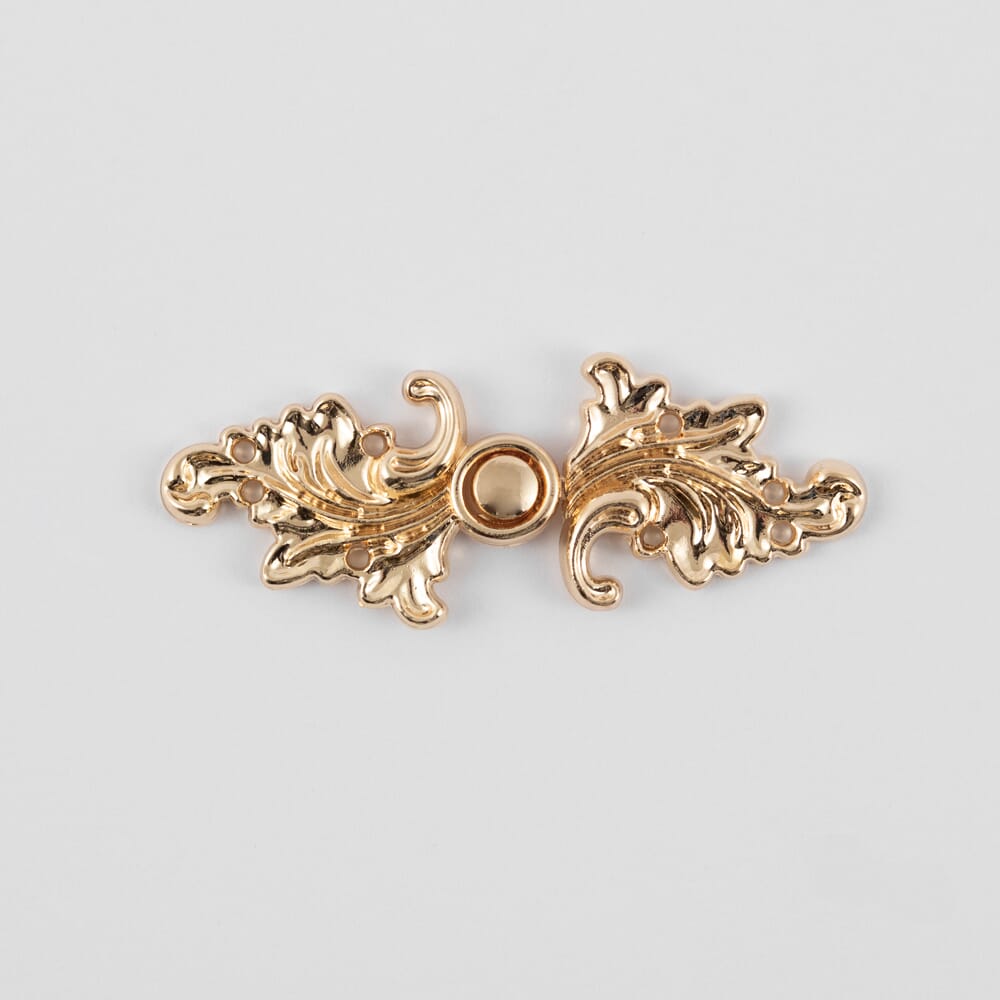 Hekte av metallegering. kan vaskes på 40 grader. Gullfarget. Nikkelfri.