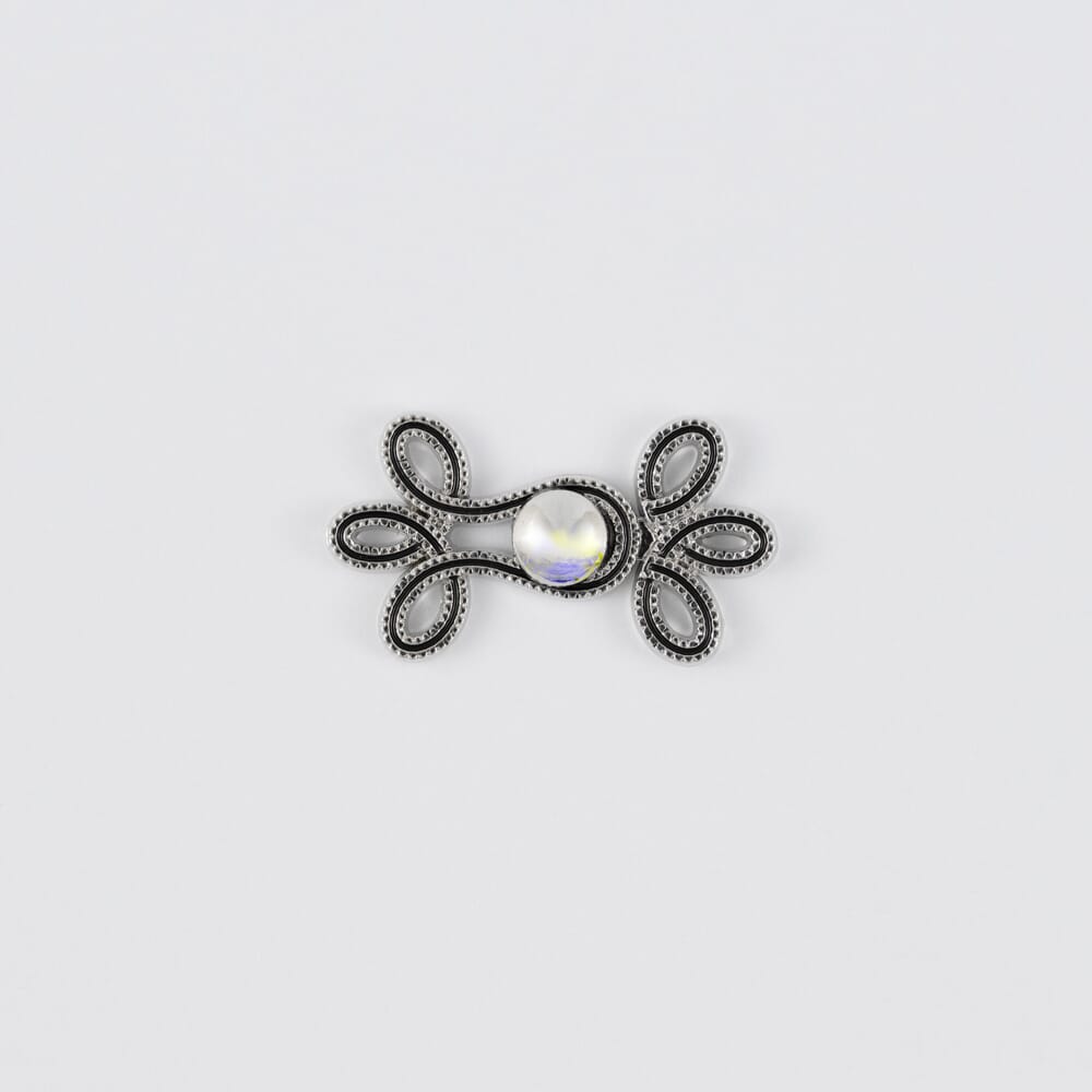 Hekte av metallegering. kan vaskes på 40 grader. Sølvfarget. Nikkelfri.