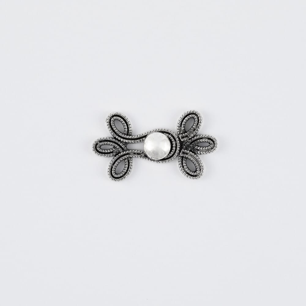 Hekte av metallegering. kan vaskes på 40 grader. Sølvfarget. Nikkelfri.