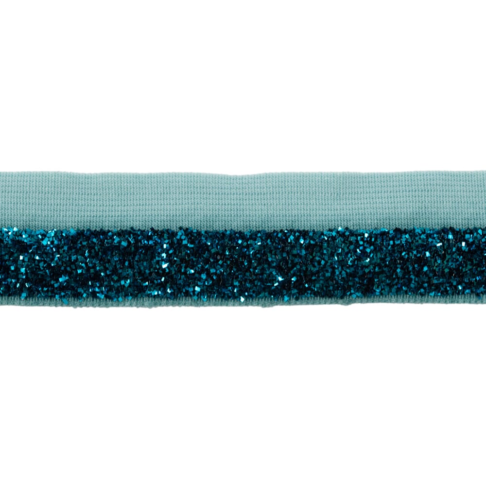 Elastisk bånd på rull med glitter. av polyester og elastan. Glitter vil ikke forsvinne i vask. Kan vaskes på 40 grader.