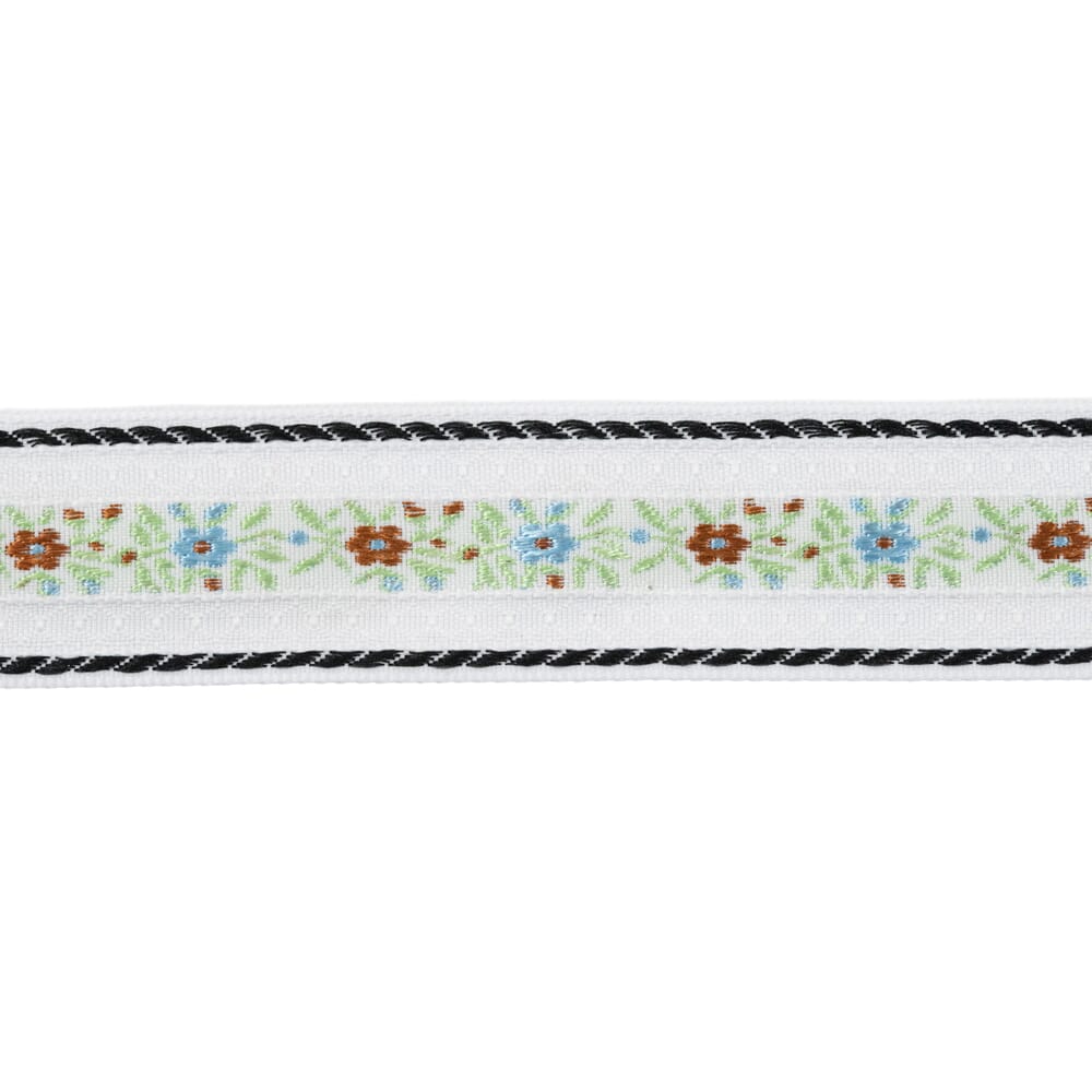 Brodert bånd på rull. Laget av polyester og bomull. Kan vaskes på 40 grader.