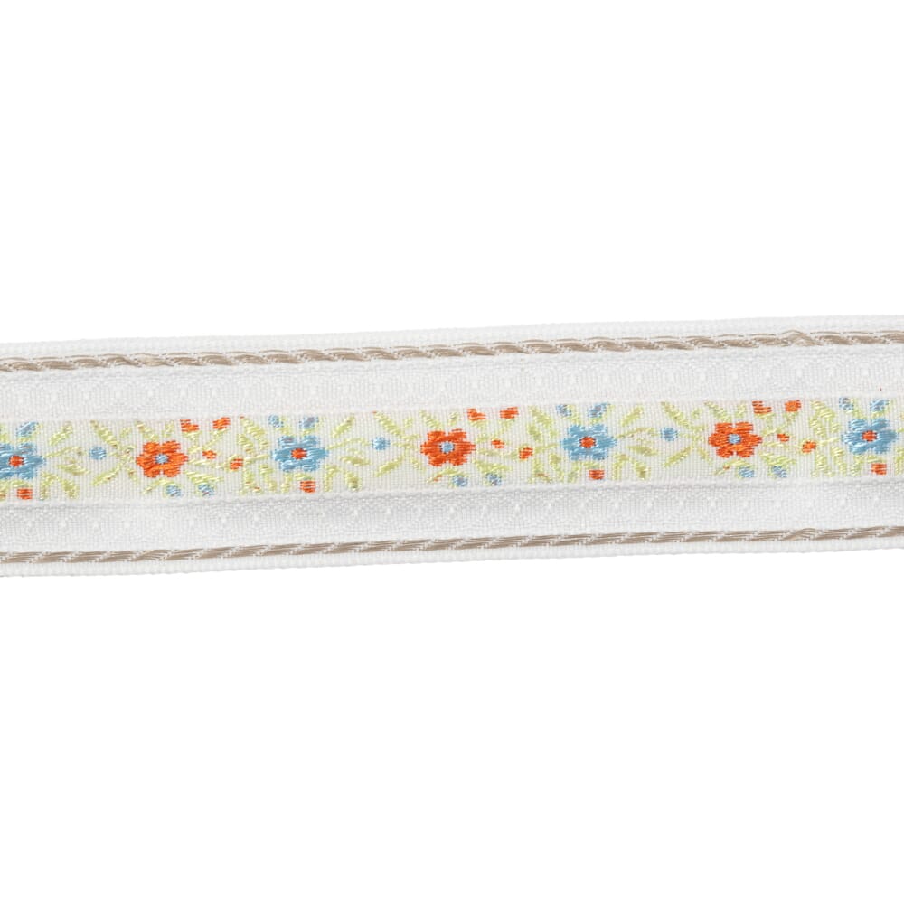 Brodert bånd på rull. Laget av polyester og bomull. Kan vaskes på 40 grader.