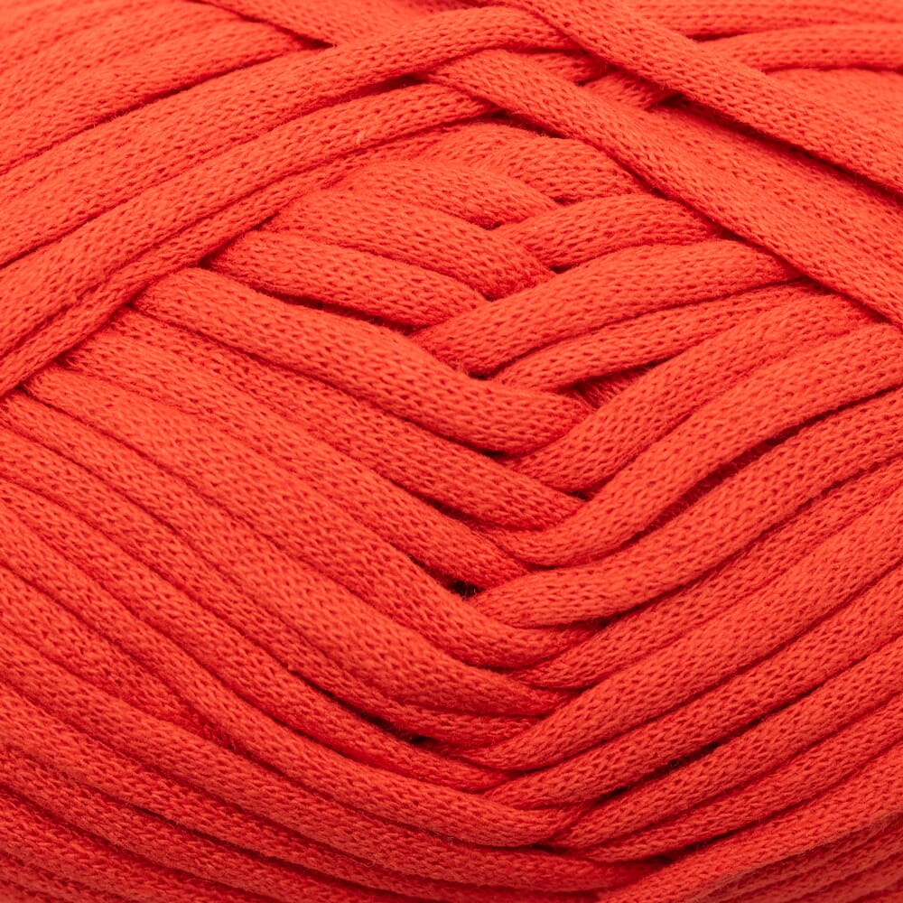 Tubegarn i myk bomullstube. og med kjerne av nylon. Passer til å hekle/strikke interiør som puter, kurver og matter osv.