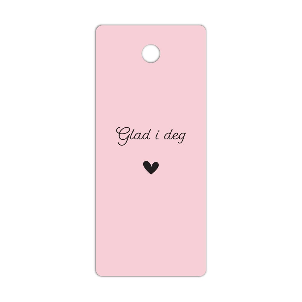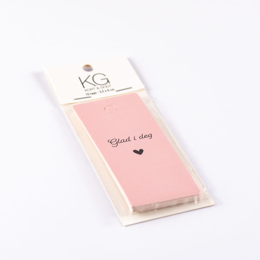 Tags i kartong med hull til tråd. Fine å bruke som merkelapp på gaver. Glad i deg.