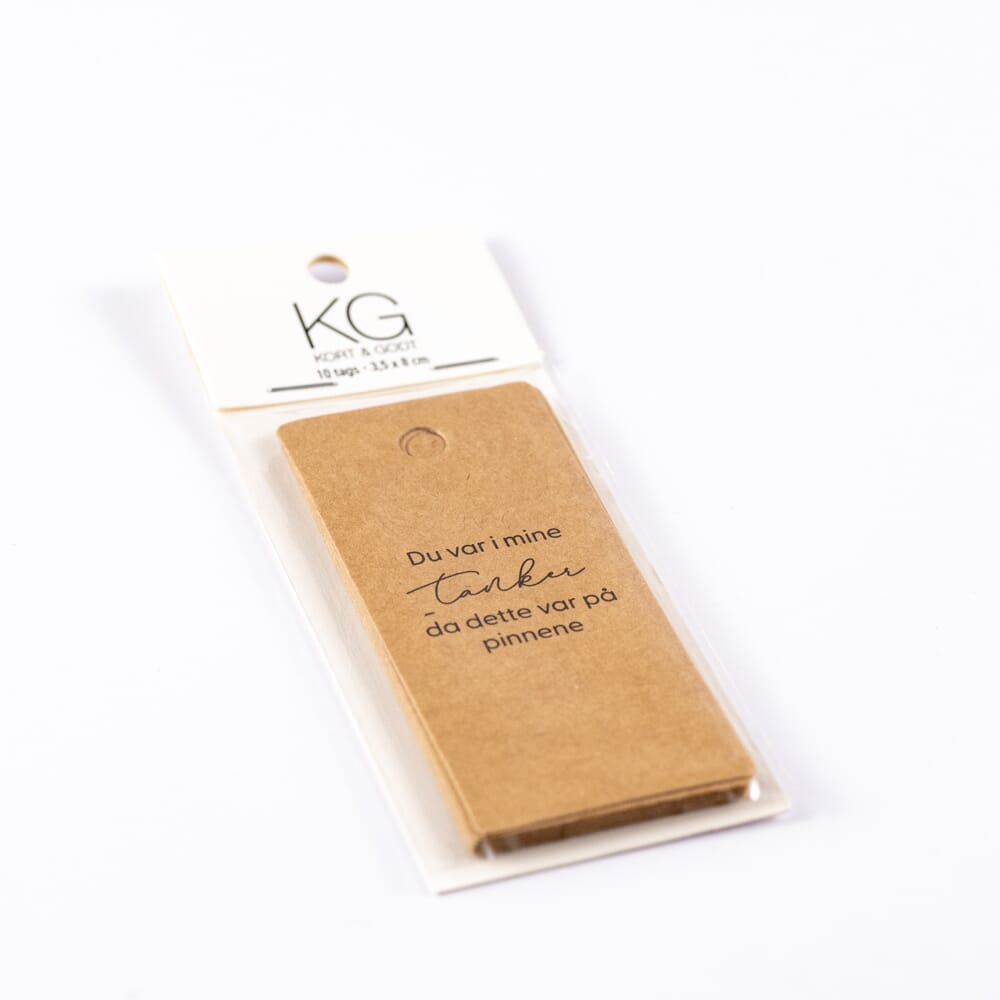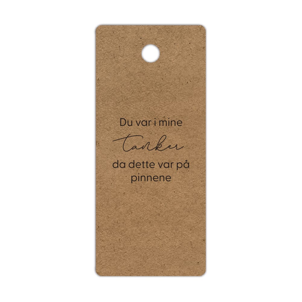 Tags i kartong med hull til tråd. Fine å bruke som merkelapp på gaver. Du var i mine tanker da dette var på pinnene.