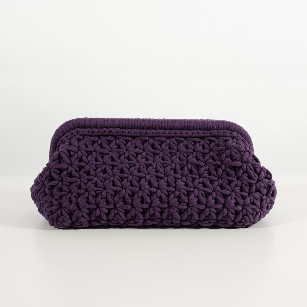 Materiale: Tubegarn TB139 3 nøster (TB140 3 nøster) TB137 4 nøster Veiledende pinne: Heklenål 5mm Heklefasthet: 5 masker x 5 omganger = 10x10cm Mål: Bredde: 22 (24) 30cm Høyde: 14 (14) 14cm Dybde: 14 (14) 14cm Tilbehør: Veskeramme S VH1035 (M VH1036) L VH1037. Maskemarkør K7074
