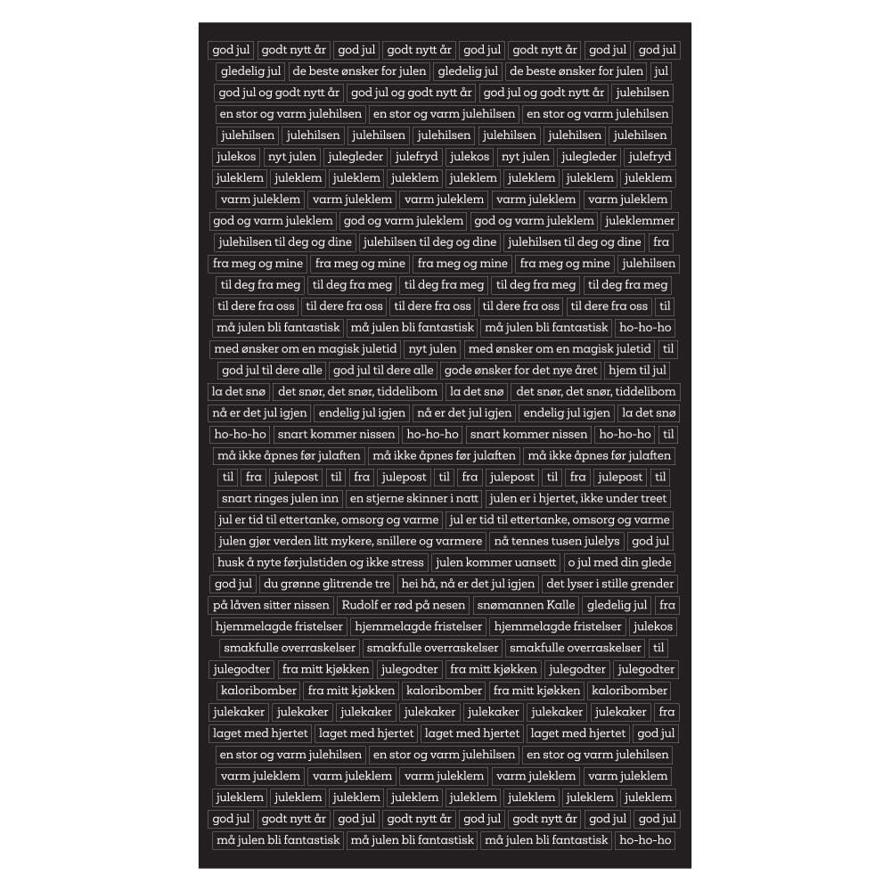 Jul, nytt år, julehilsen, juleglede, julekos, julefryd, juleklem, hohoho, julepost, julaften, julegodter, hjemmelagde."