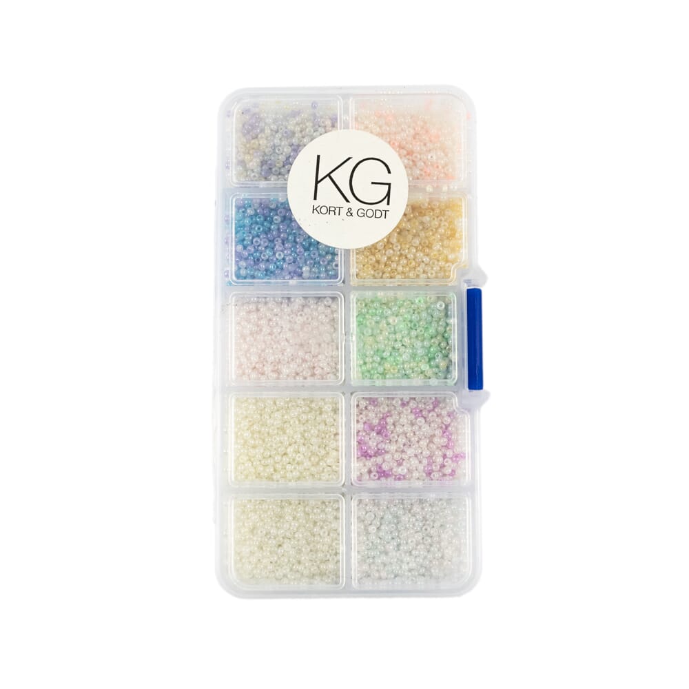 Perleskrin med 10 forskjellige farger 2mm glassperler med hull.