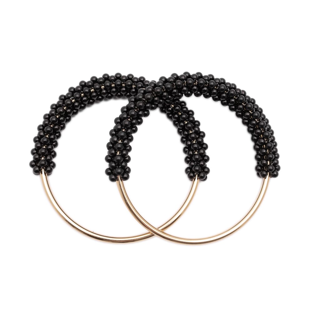 "Håndtak i metallegering, med perler i plast. Kan brukes til egenlagde vesker og nett. Nikkelfri."