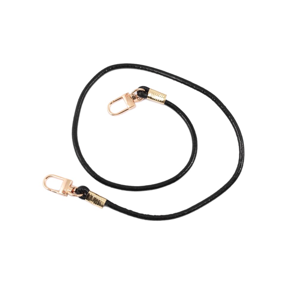 "Håndtak i ekte skinn, med kroker. Kan brukes til egenlagde vesker og nett. Nikkelfri."