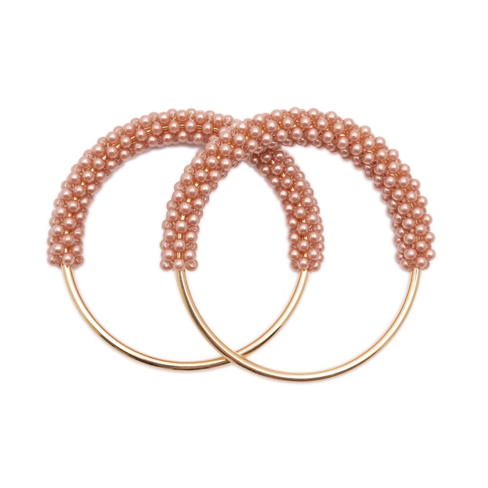 "Håndtak i metallegering, med perler i plast. Kan brukes til egenlagde vesker og nett. Nikkelfri."