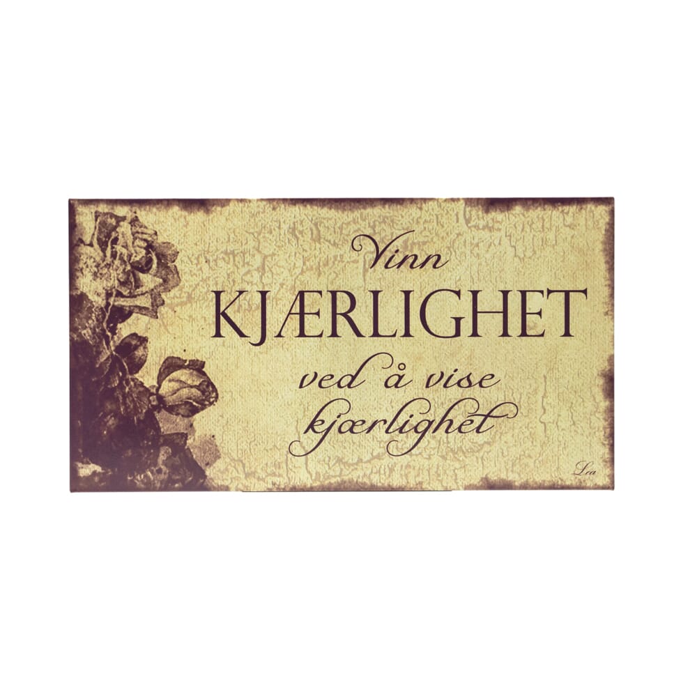 Metallskilt med norske tekster. Vinn kjærlighet ved å vise kjærlighet.
