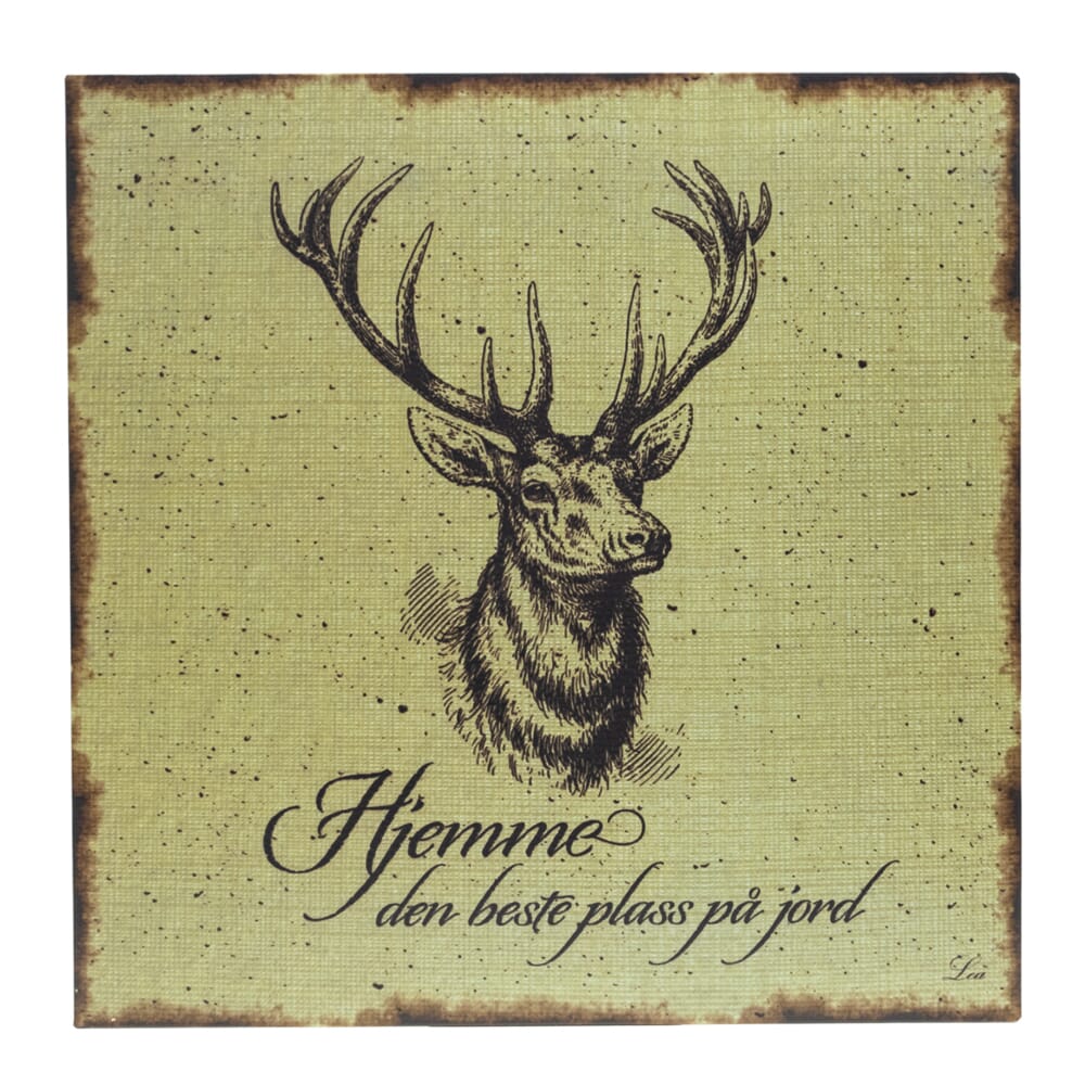 Metallskilt med norske tekster. Hjemme er beste plass på jord.