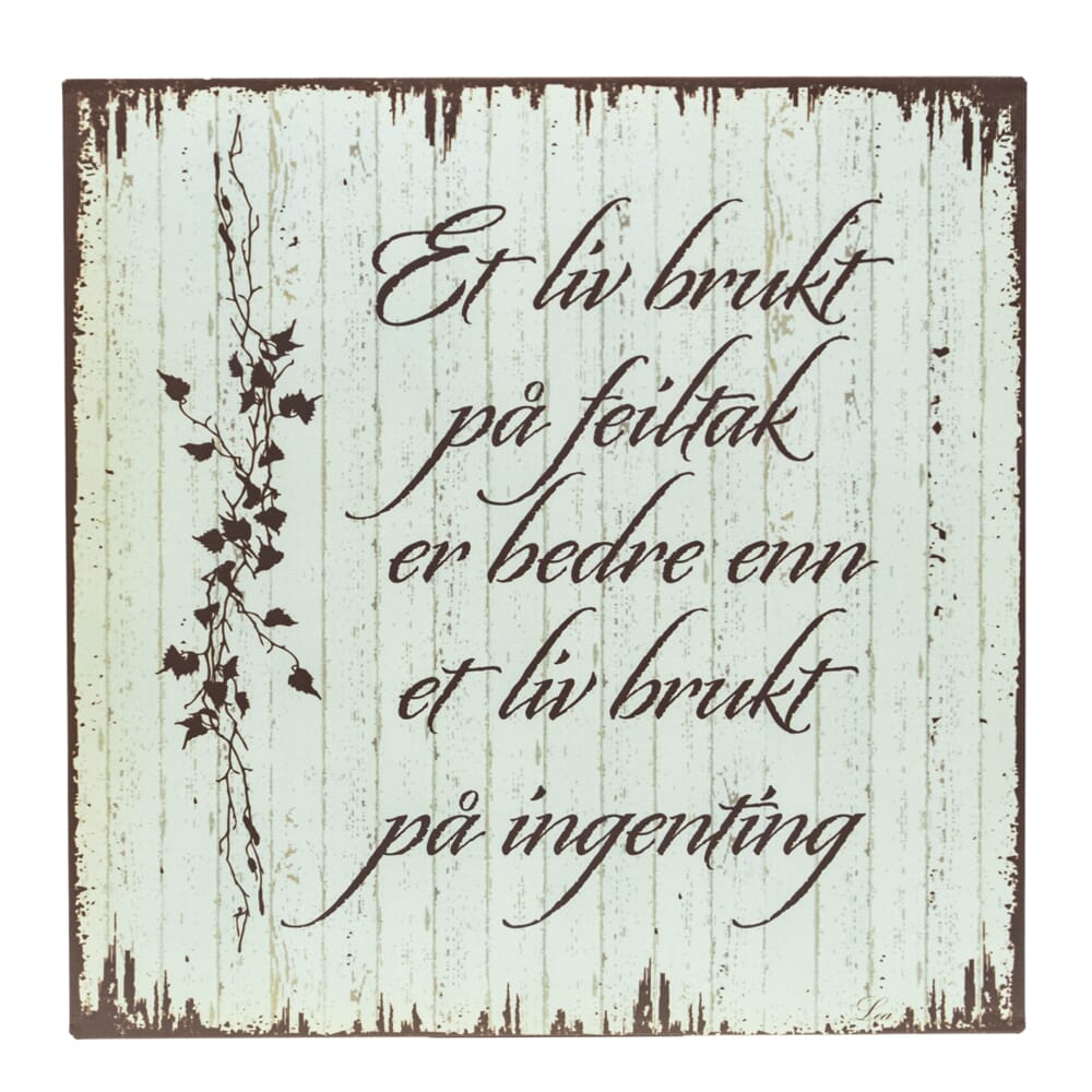 Metallskilt med norske tekster. Et liv brukt på feiltak er bedre enn en liv brukt på ingenting.