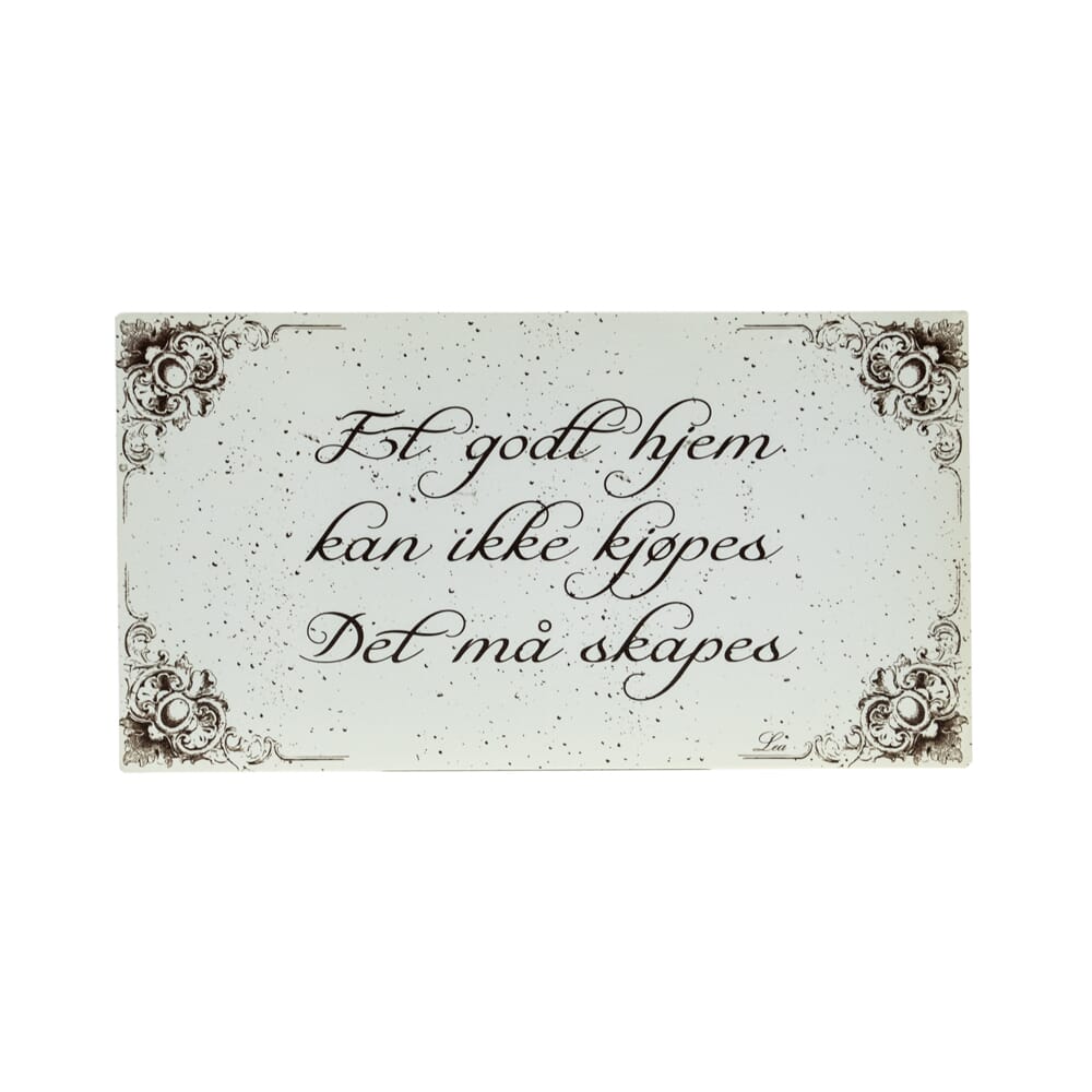 Metallskilt med norske tekster. Et godt hjem kan ikke kjøpes. det må skapes.