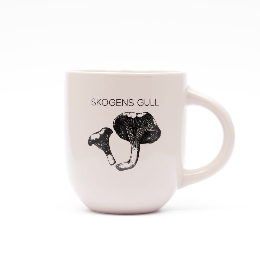 Kopp i keramikk med norsk tekst og motiv