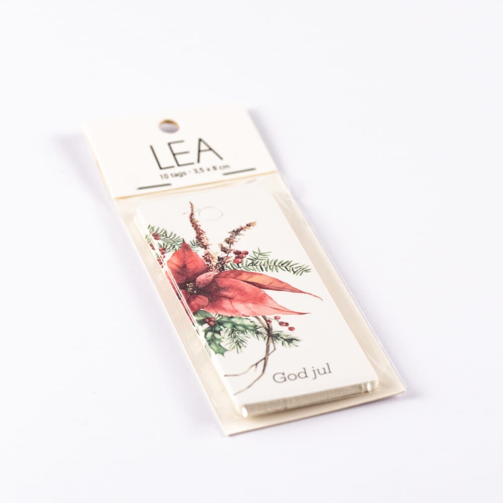 Tags i kartong med hull til snor. Fine å bruke som merkelapp på gaver.