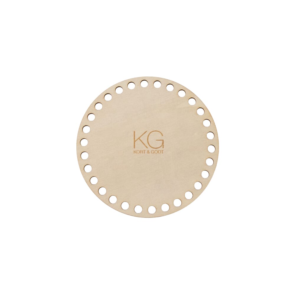 Bunn i ulakkert kryssfiner til å hekle eller sy på vesker og kurver. Stabil bunn med 30 hull(Ø8mm) langs kanten.