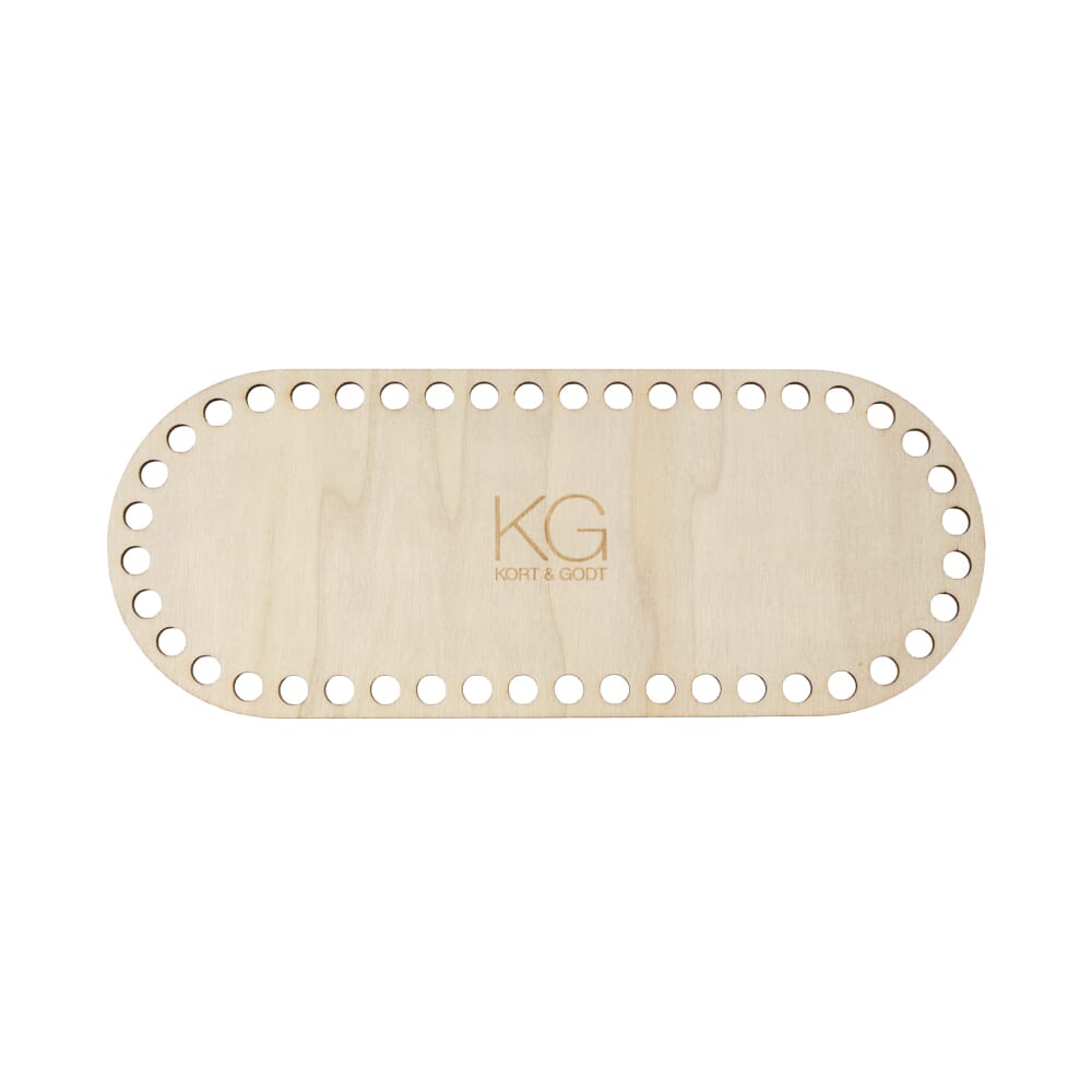 Bunn i ulakkert kryssfiner til å hekle eller sy på vesker og kurver. Stabil bunn med 44 hull(Ø8mm) langs kanten.
