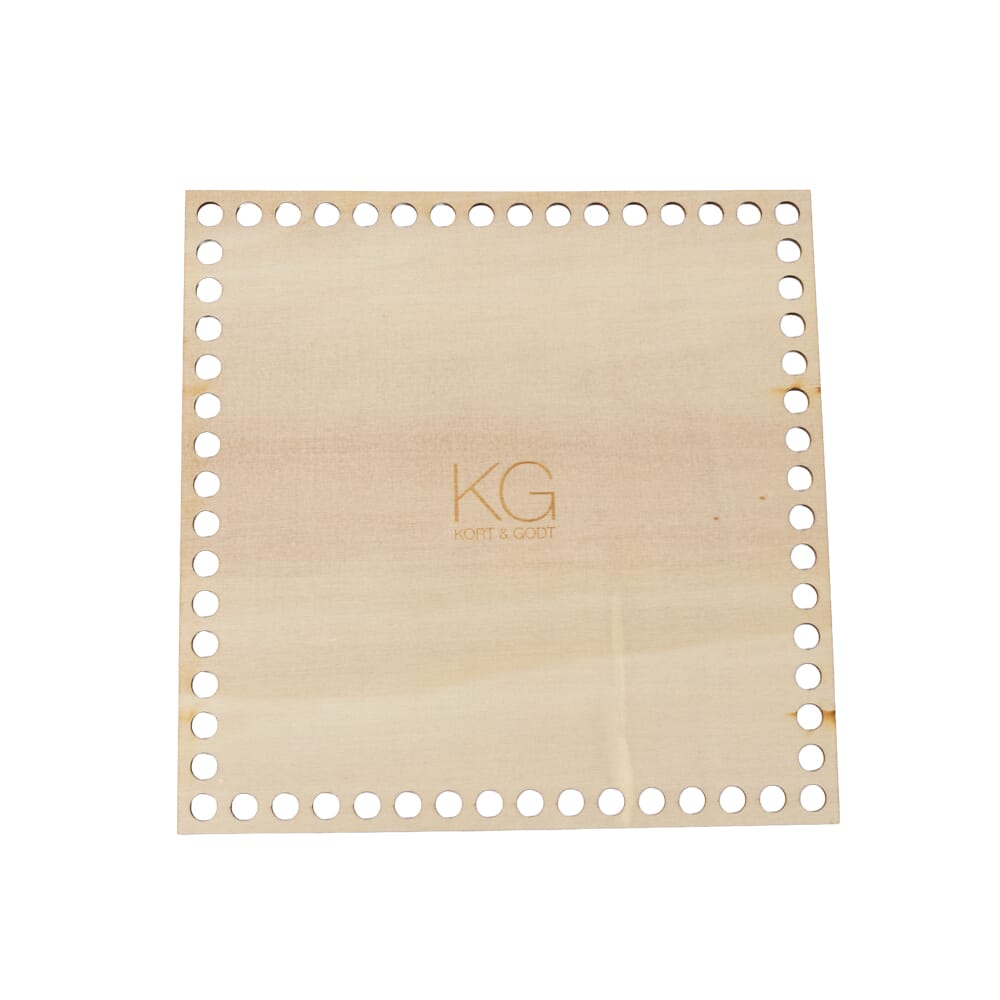 Bunn i ulakkert kryssfiner til å hekle eller sy på vesker og kurver. Stabil bunn med 60 hull(Ø8mm) langs kanten.