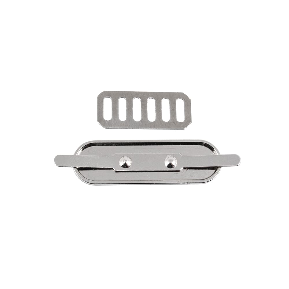 Metallmerke i rustfri sinklegering. nikkelfrie. Kan brukes på vesker og stoff. Det følger med en bakplate til å feste merket med.