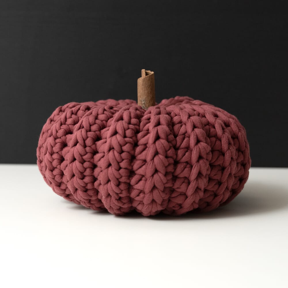 Materiale: Tubegarn+ 7mm - TB103. TB113 eller TB116 2 nøster (240g) Veiledende pinne: Heklenål 8mm Heklefasthet: 7 masker x 6 omganger med halvstaver = 10x10cm Mål: Diameter: 19 cm Høyde: 9cm Tilbehør: Fyllvatt eller annet fyll, Kanelstang eller en kvist