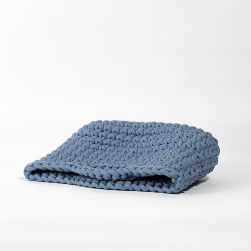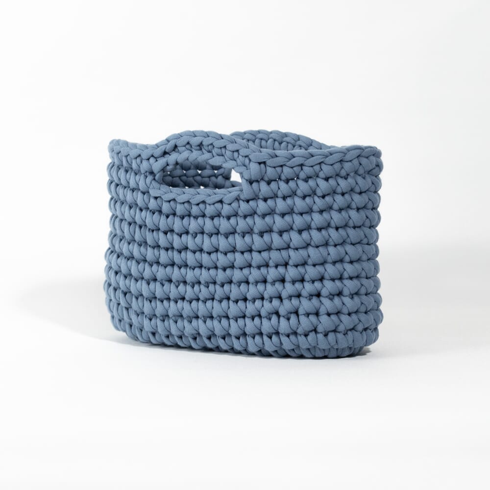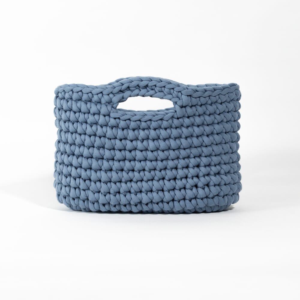 Materiale: Tubegarn+ 7mm - TB127 2 nøster (240g) Veiledende pinne: Heklenål 8mm Heklefasthet: 7.5 masker x 8 omganger = 10x10cm Mål: Bredde: 26cm Høyde: 20cm Tilbehør: